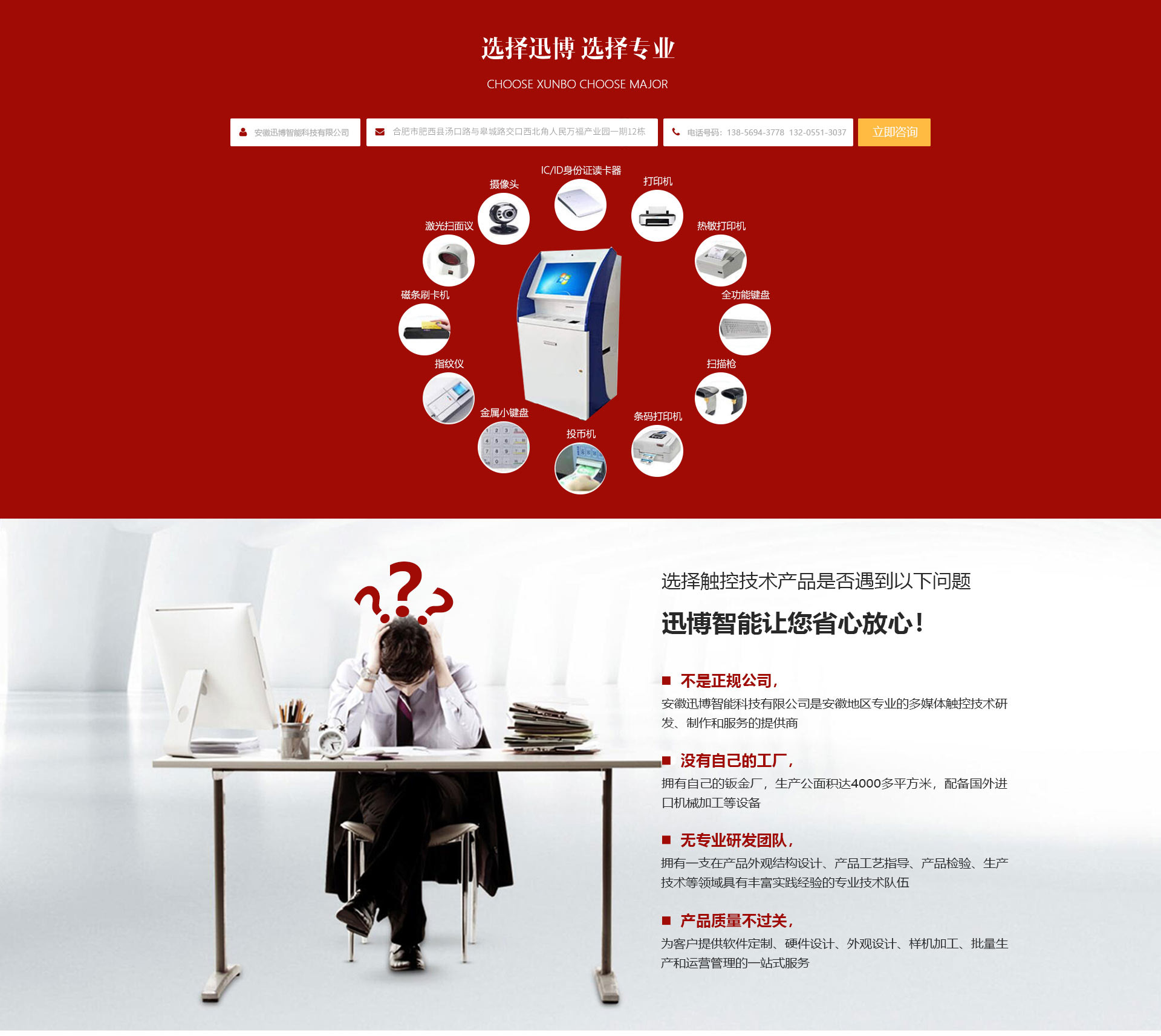 迅博科技 位于中國科教城---合肥市,地處合肥市肥西縣湯口路與皋城路交口西北角人民萬福產業園一期12棟,是一家計算機信息領域的高新技術企業公司,全心全意服務于信息化建設,做信息化提供商,全力打造信息時代新模式。引進了現代企業管理模式和完善的競爭、激勵機智,既具備國有企業的信譽,又兼備努力拼搏、一致向上的精神。迅博科技 擁有多項軟件著作權證書和多項硬件技術證書同時也是一家高新技術企業,注冊資本達500萬,辦公面積近1500平米,同時有合資在杭州成立自己的4000多平米的鈑金廠,公司擁有一支實力、富有經驗的計算機和信息技術隊伍和市場營銷隊伍,技術人員都有很強的背景和豐富的實踐經驗。一貫注重與...